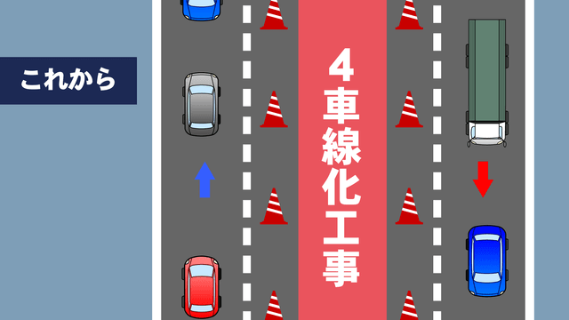 これで対面通行が解消し、今後、中央分離帯などを設置する工事が進みます。