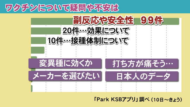 また、ワクチンについての疑問や不安を訪ねたところ、圧倒的に多く寄せられたのが安全性や副反応に関する意見です。