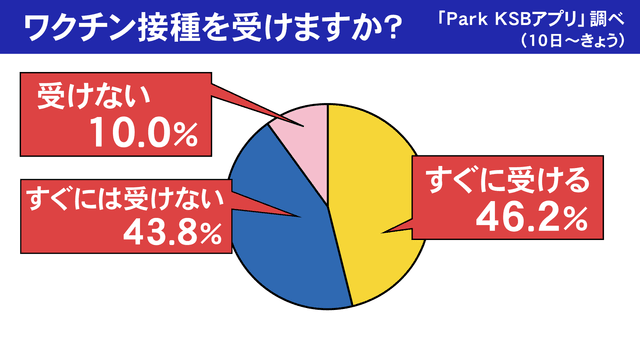 接種を希望するがすぐには受けないと答えた人は43.8パーセント。受けないと答えた人は10パーセントでした。