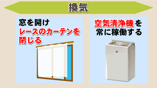 自宅ではレースのカーテンを閉じて、花粉を入れないようにすることが大切だといいます。また、空気清浄機を常に稼働することも有効だそうです。