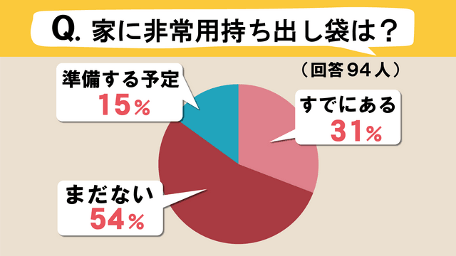 この非常持ち出し袋が「家にあるか」を聞いたところ、「ある」と答えた方は3割ほどでした。