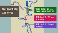 山陽道と中国道をつなぐ岡山道の一部区間で4車線化工事が完了