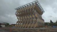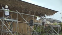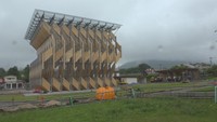 7月オープンのサイクリングセンター   天井や壁に、自生する「ススキ」を使用