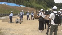 • 工事の進捗について国土交通省が現地説明会を開く様子