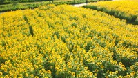 岡山市北区牟佐の畑で見頃を迎えているヒマワリ