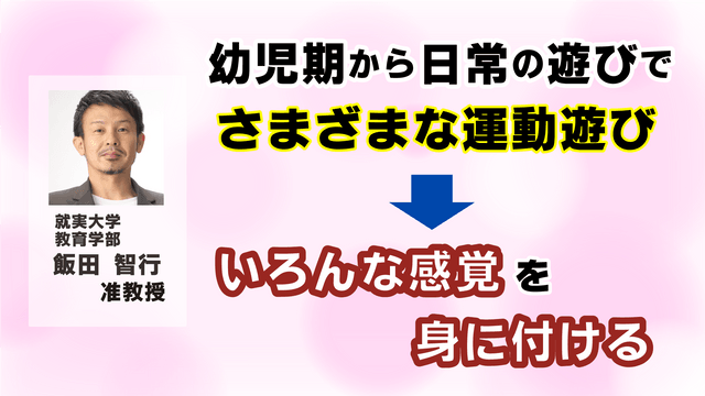 幼児期から日常の遊びの中でさまざまな運動遊びを経験させて、いろんな感覚を身に着けることが大切だということです。