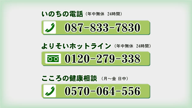 いのちの電話 087-833-7830 (年中無休24時間)