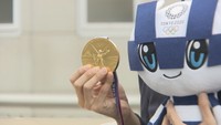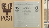 宇山賢さんをたたえようと、JR高松駅の前に「金色のポスト」が設置