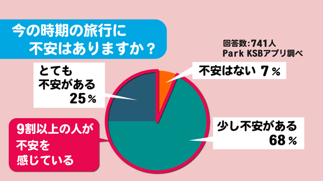 アプリで「今の時期の旅行に不安があるか」を聞いてみた結果、9割以上の人が「少し不安がある」または「とても不安があると」と答えました。