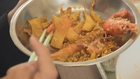 • 給食に登場した「テナガエビとさつまいものごまがらめ」