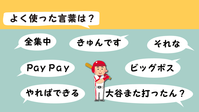 新型コロナ関連以外では、「全集中」や「きゅんです」など去年から続くものや、プロ野球・日本ハムの新庄新監督が言った「ビッグボス」などがありました。このほか「大谷また打ったん?」を流行語にあげた人もいました。