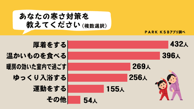 寒さの対策については「厚着をする」と答えた人が最も多くなっています。