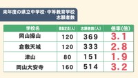 • 岡山県立中学校・中等教育学校の志願者数「昨年度とほぼ同じ」