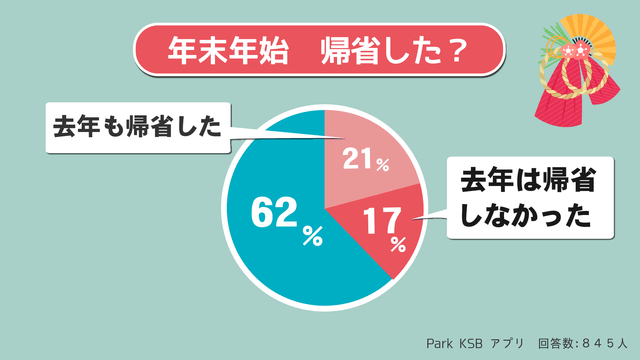 帰省についてのアンケートには約4割が「帰省した」と回答