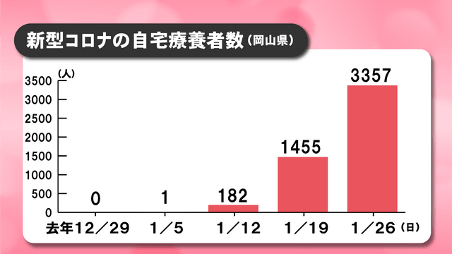 岡山県の新型コロナによる自宅療養者は、オミクロン株の感染拡大で年明けから急激に増えているのが分かります。