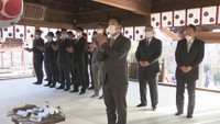 昨シーズン総合優勝の香川オリーブガイナーズ 石清尾八幡宮で必勝祈願 高松市