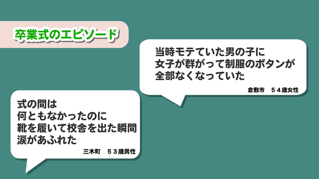 視聴者の皆さんの声をもとにニュースをお届けする「みんなに聞いてみた」。3月1日は岡山・香川の高校で卒業式が行われました。そこで今回は皆さんに「卒業式の思い出」を聞いてみました。