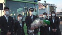 通学などで利用したフェリーの船長やバスの運転手に花束を贈呈
