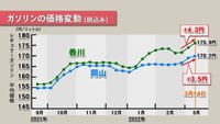 • ガソリン価格 岡山は4週連続、香川は3週連続で前週より値上がり