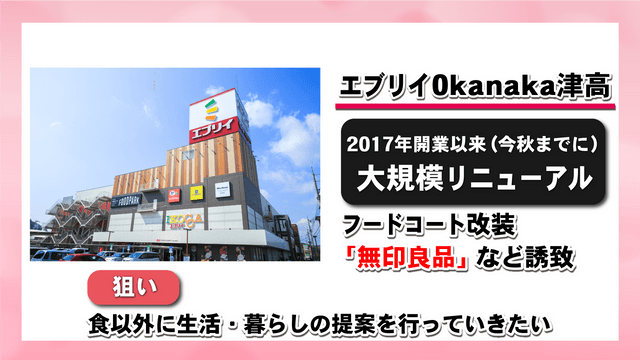 リニューアルの動きはこれだけではありません。岡山市北区の商業施設「エブリイ Okanaka津高」もリニューアルを発表しています。