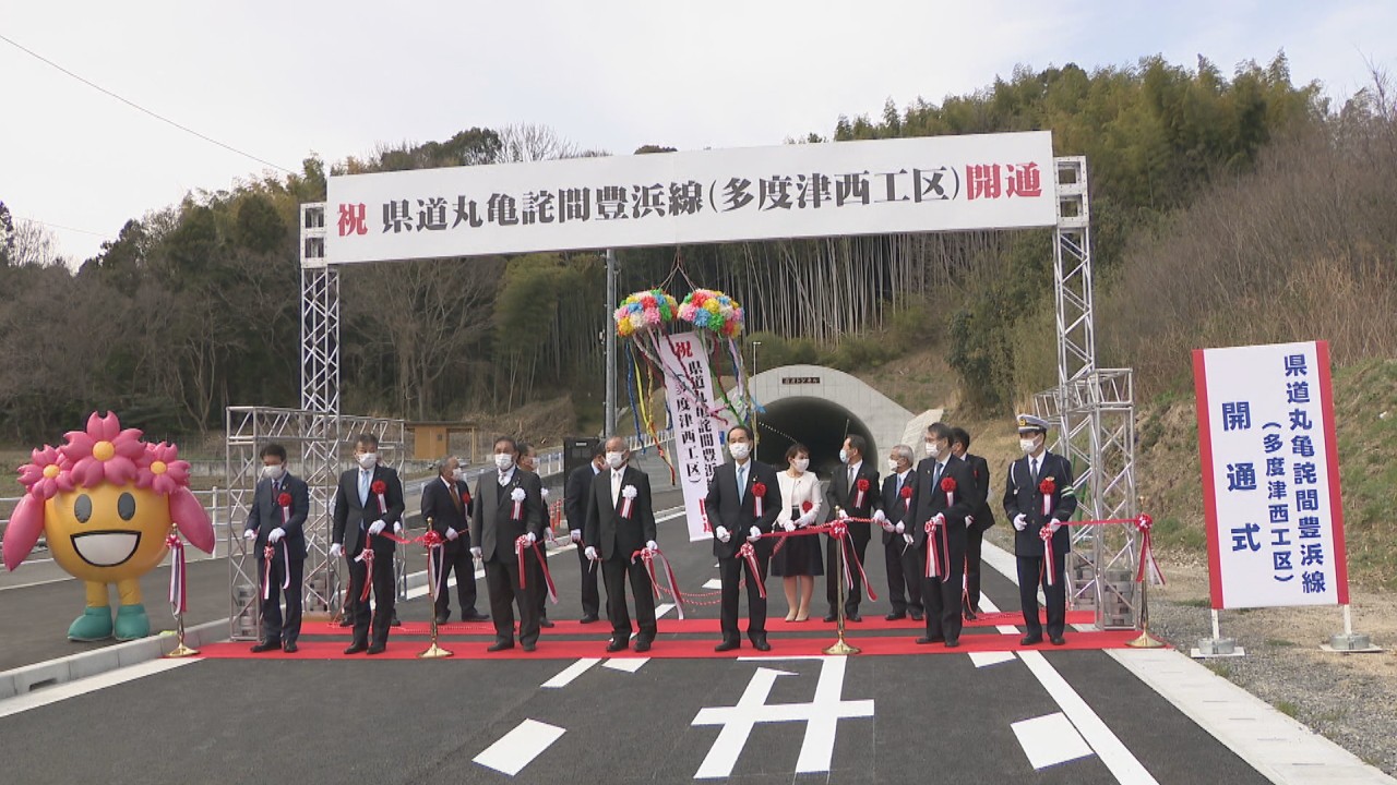 香川県内の海沿いを高松市から観音寺市まで走る道路、通称「さぬき浜街道」。21日、多度津町内のさぬき浜街道の一部が新しい道に変更され、供用が始まりました。