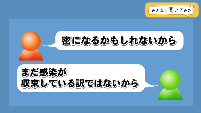 理由としては、「密になるかもしれないから」といった意見や「まだ感染が収束しているわけではないから」といった意見が寄せられました。