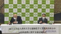 • 協和化学工業の木下幸治社長(左)と香川大学の筧善行学長(右)