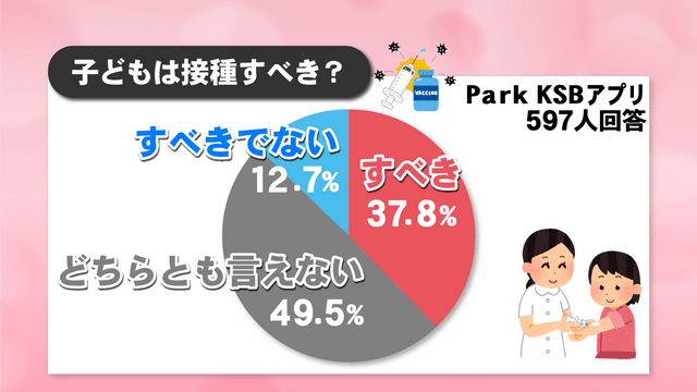 「子どもへのワクチン接種」についてPark KSBアプリでのアンケートでは「接種すべき」の37.8%が、「すべきでない」の12.7%を上回ったものの、最も多かったのが「どちらとも言えない」という答えの49.5%でした。