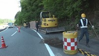 • 新見市哲多町花木の県道で行われた落石対策