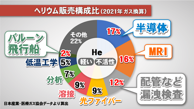 新型コロナウイルスやロシアのウクライナ侵攻などの影響で物価が上昇する中、実は生活に身近なヘリウムにも影響が出ています。