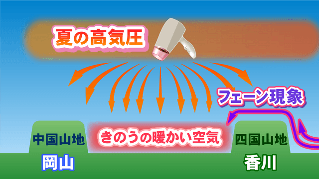 さらに岡山・香川では「暑くなる要因」が重なりました。