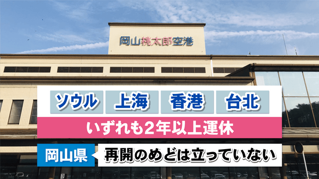国際線を巡っては、岡山空港でも4つの定期路線全てが2年以上運休しています。岡山県によると、いずれも再開のめどは立っていないということです。