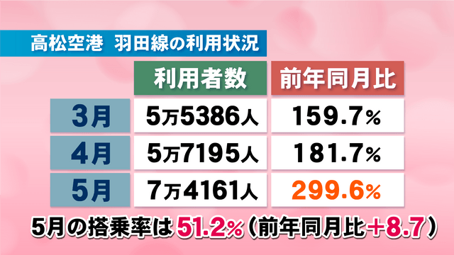 5月の利用者は2021年の同じ月の約3倍で搭乗率も9ポイント近く上がりました。