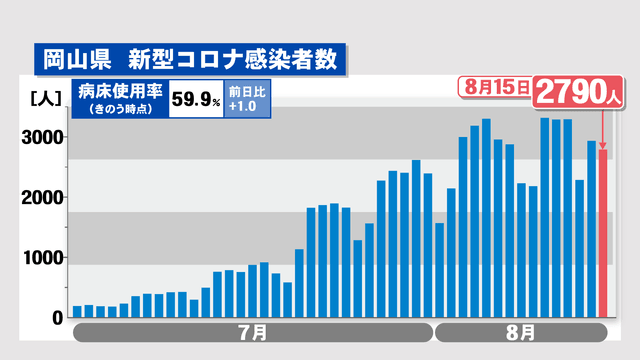 15日、岡山県では新たに2790人の新型コロナウイルス感染と感染者5人の死亡が発表されました。