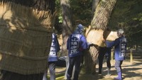岡山後楽園で「松のこも巻き」  約50年続く秋の風物詩