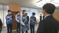 知事を表敬訪問する岡山シーガルズの選手ら 岡山県庁(岡山・北区内山下)