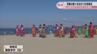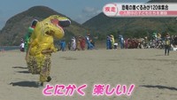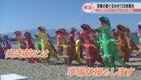 ティラノサウルスの着ぐるみ120体が海岸を疾走 入院の子どもたちに元気を 香川・観音寺市