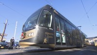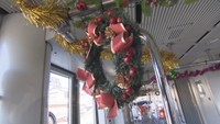 「クリスマス電車」が運行開始 路面電車をリースやツリーで飾り付け 岡山市