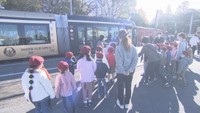 • 年末恒例「クリスマス電車」の運行始まる 出発式でサンタが園児にプレゼント 岡山電気軌道
