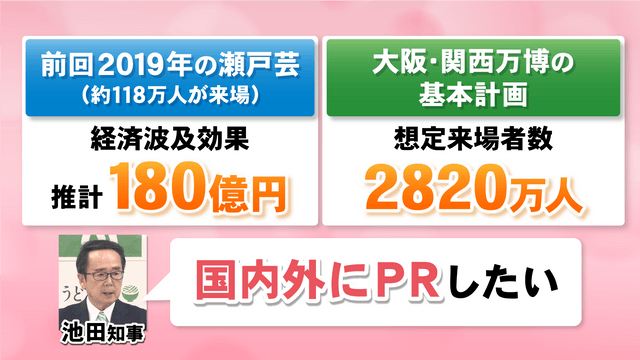 次回の瀬戸内国際芸術祭について香川県の池田知事は、2025年に開催する意向を示しています。年度内に開かれる次の総会で正式に決まる予定です。この2025年で期待されているのが大阪・関西万博との「相乗効果」です。