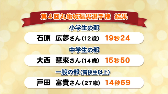 2023年の福男を走る速さで競うイベントが、「丸亀城」で開かれました。