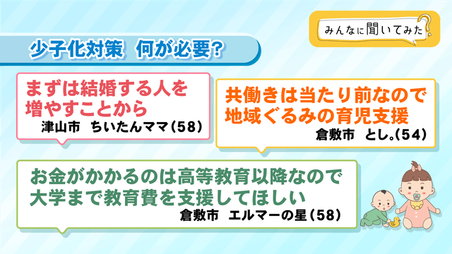少子化に危機感がある?【みんなに聞いてみた】 2023/2/20 19:12 みんなに聞いてみた ADVERTISEMENT ADVERTISEMENT 19日は岸田総理大臣が子育て支援策の視察のため岡山県奈義町を訪れましたが、Park KSBアプリでは皆さんに、今の少子化に危機感があるか聞いてみました。 写真ページをみる