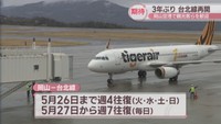 岡山空港の台北線が3年ぶりに再開 きびだんごなどで観光客らを歓迎