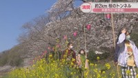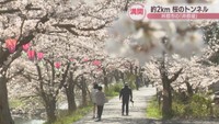 約2kmの“桜のトンネル” 岡山・井原市の「井原堤」 で桜が満開