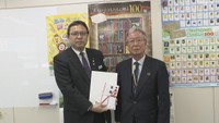 • 新1年生に交通安全啓発 「黄色いカード」をKSBが香川県教委に贈呈 Play