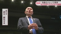 岡山芸術創造劇場「ハレノワ」 オープン前に周辺首長らが視察 瀬戸内市長は思わず熱唱 岡山市