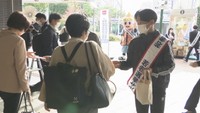 大学生による若者選挙サポーターも参加 岡山県議選投票呼び掛け