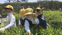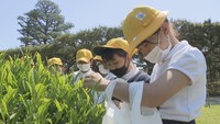 「苦い!」小学生が新茶の茶摘みを体験 八十八夜に合わせ 高松市・栗林公園