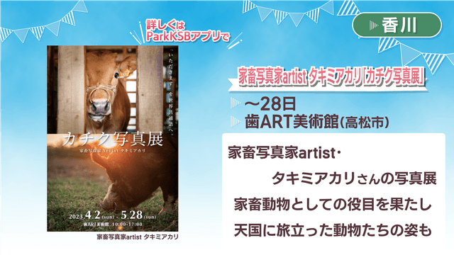 香川の2位は、高松市の「歯ART美術館」で開かれている、北海道を拠点に活躍する家畜写真家artist・タキミアカリさんの写真展「カチク写真展」です。