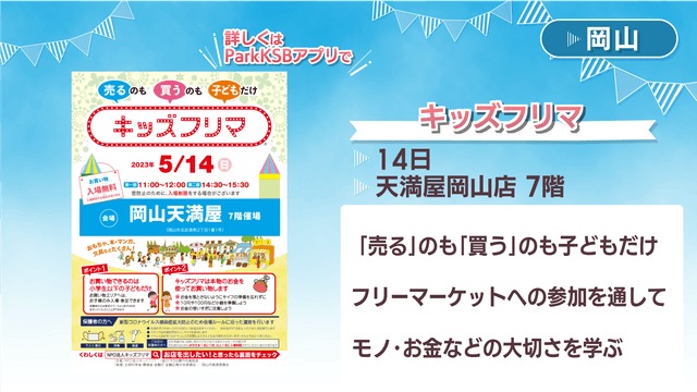 そして、もう一つ注目イベントをご紹介します。14日(日)に天満屋岡山店で開かれる「キッズフリマ」です。